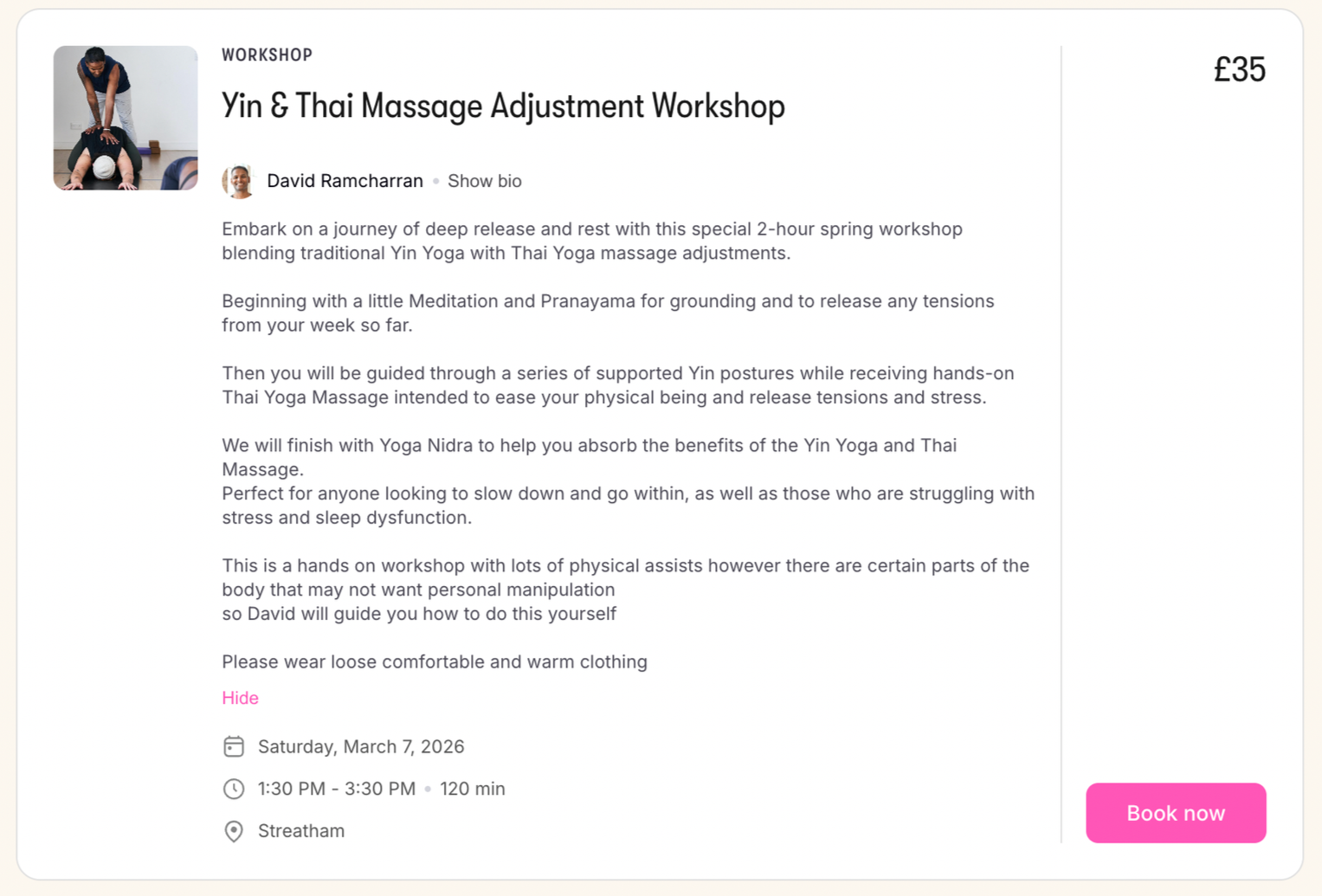 Book here: https://momence.com/Yogarise/Yin-%26-Thai-Massage-Adjustment-Workshop/127325731?skipPreview=true